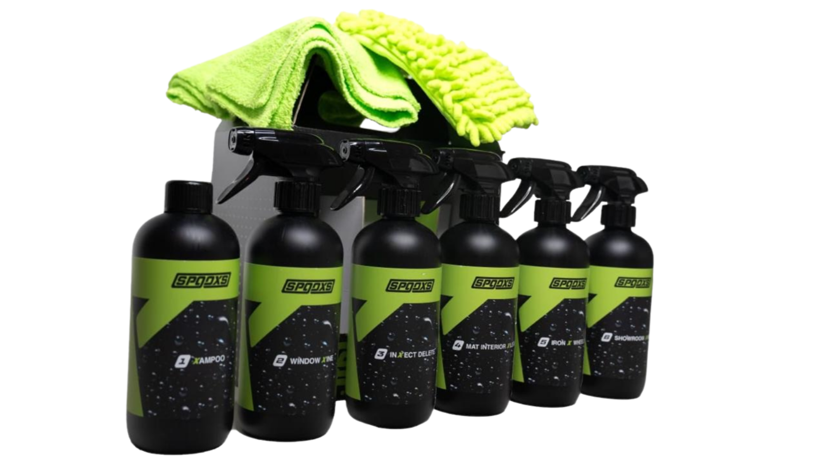 SPOOXS is een Belgisch merk met een compleet assortiment voor het reinigen en onderhouden van auto’s, campers en motoren. De lijn bestaat uit zes spuitbussen die in logische volgorde kunnen worden gebruikt, aangevuld met microvezeldoeken, emmers, grootverpakkingen en de handige Xine Handy.